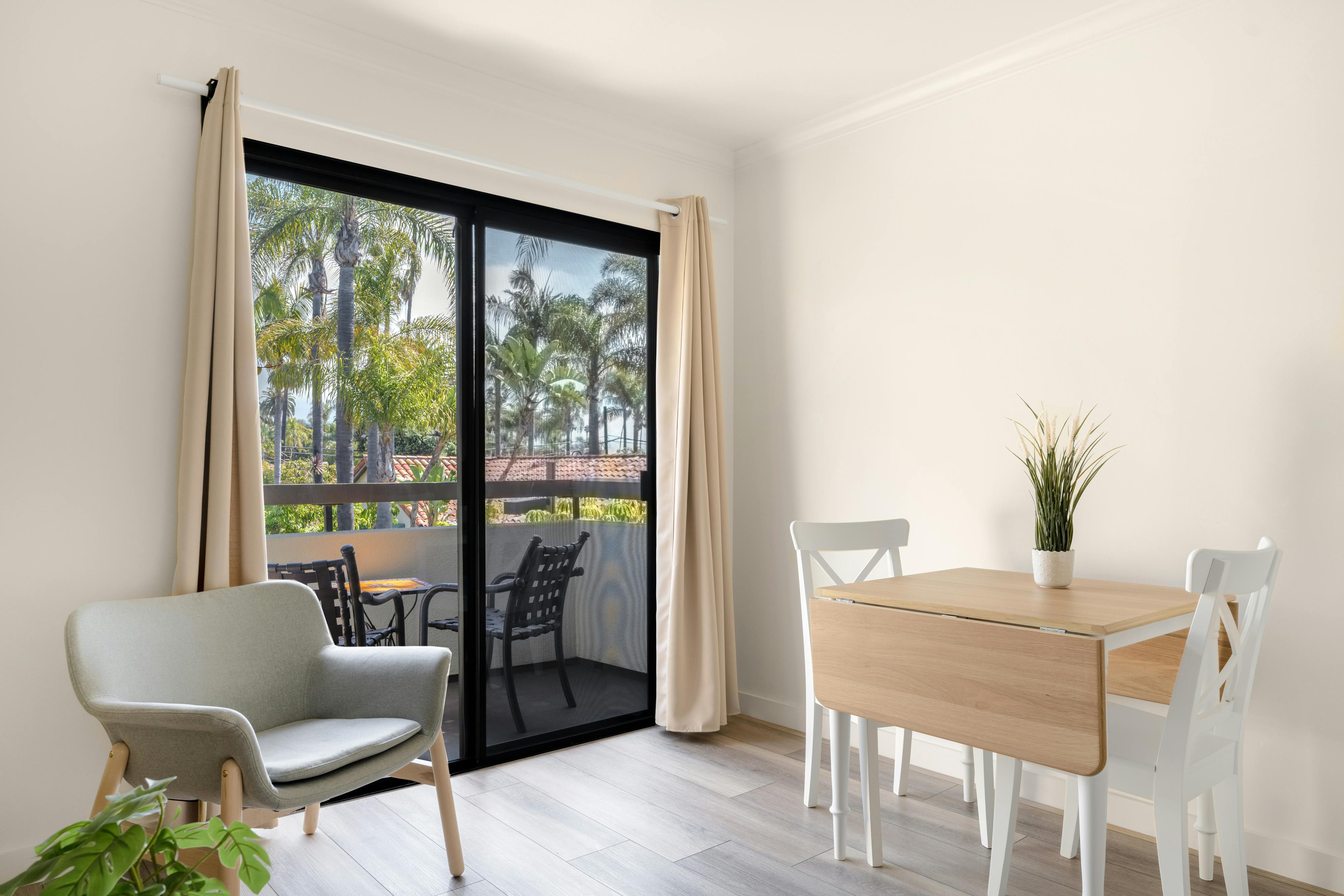 See AllQueen Guestroom Located in the Western wing, these inviting rooms will become your comfortable home-away-from-home. The relaxed yet sophisticated Santa Barbara style is reflected in the décor, with beach-themed fabrics, serene colors, warm woods and original artwork of Santa Barbara landmarks.King Guestroom Located downstairs in the Edgewater, Franciscan and Western Wings, these welcoming rooms provide easy access and a comfortable home-away-from-home. The relaxed yet sophisticated Santa Barbara style is reflected in the décor, with beach-themed fabrics, serene colors, warm woods and original artwork of Santa Barbara landmarks.Queen Queen Guestroom Located upstairs in the Western wing, these gracious rooms afford stunning mountain views through wood-shuttered windows. With the flexibility of two queen-sized beds, rooms feature serene beach-themed décor in hues of blue, coral and sand, along with original artworks of Santa Barbara scenes. Warm natural wood finishings include a convenient sitting table and two chairs.King Double Guestroom Located in the Western wing, these rooms offer both versatility and comfort. Decorated in ocean-blue hues with natural wood furnishings and original artwork of Santa Barbara landmarks, the spacious main room features a king-size bed and LED flat-screen TV. A double bed in a separate bedroom provides additional sleeping options. Outside the bathroom, another mirrored vanity offers added convenience.Deluxe King Guestroom Located in the Franciscan and Edgewater wings, these spacious rooms are appointed with luxurious king-size beds and LED flat-screen TVs. The relaxed yet sophisticated Santa Barbara style is reflected in the décor, with beach-themed fabrics, serene colors and dark woods. Newly renovated bathrooms include distinctive slate features and elegant marble bathroom vanities.Deluxe King Balcony Guestroom Located in the Edgewater wing, these popular second-story rooms offer all the comforts of home, including private balcony views, a king-size bed and LED flat-screen TV. The relaxed yet sophisticated Santa Barbara style is reflected in the décor, with beach-themed fabrics, serene colors and warm woods. Take a break from your activities and enjoy a snack or meal at the cozy table for two.Executive King Guestroom Accessible Roomy and comfortable, the Executive King Accessible is located on the Franciscan side of the property. The main room has a King Bed with custom white bedding. This room also offers a 50″ LED HDTV. The bathroom has a beautiful stone treatment and a combo bath/ shower with a waterfall shower head. This room has plenty of windows to enjoy the Santa Barbara sun and a secluded entrance makes you feel right at home.Junior King Suite The Junior King Suite overlooks a soothing courtyard fountain. Versatile with all the comforts of home, the Junior Suite is appointed with warm, hand-carved woods and beach motifs. Spacious and inviting, the room features a king-size bed, and a generous flat-screen LED TV. Slate tiles and whimsical seaside wall coverings are consistent themes these upgarded bathrooms.Franciscan Suite The Franciscan suites offer versatility, style and the comforts of home. The inviting décor combines hand-carved woods and soothing beach tones, reflecting the relaxed yet sophisticated Santa Barbara style. With plenty of space to unwind, the welcoming living room features a queen size sofa bed, flat-screen LED TV, glass-topped wood dining table for four and desk. The queen-size bedroom includes a flat-screen LED TV. Newly renovated bathrooms are appointed with distinctive slate accents.Franciscan Suite Balcony Guests enjoy the Balcony Suites for their mountain views and individual balconies. A separate bedroom affords privacy. Spacious and inviting, the room features a generous flat-screen LED TV, queen-sized sofa bed. Slate tiles and whimsical seaside wall coverings are consistent themes throughout the newly renovated bathrooms.Palm Suite Accessible The Palm Suite is fully ADA compliant. Its lovely corner location includes several windows—perfect for catching Santa Barbara ocean breezes and sun. A large, homey living room features a large LED HDTV with a microwave, refrigerator and sink. This unique suite also boasts a private entrance. Getaways are often made easier with a bit of modern technology to streamline your life. You’ll find everything from LED flat-screen tvs to iHomes™ and complimentary WiFi.Manager's Suite The spacious Manager’s Suite is located in the Franciscan wing, the suite accommodates up to 6 guests. The master bedroom is a spacious room with a king bed and LED flat-screen TV. The separate queen-size bedroom also includes an LED flat-screen TV and a living room with a queen sofa bed and a large LED flat-screen TV. .Edgewater Suite Located in our Edgewater wing, this unique suite has a queen-size bedroom downstairs with an LED flat-screen TV, and loft-style queen-size bedroom upstairs. The relaxed yet sophisticated Santa Barbara style is reflected in the décor, with beach-themed fabrics, serene colors and hand-carved wood furnishings. Wood shuttered windows add to the beachy tone throughout. A separate kitchen with cozy two-person dining table is fully stocked. The living room area offers ample room to relax, with a spacious dining table that seats six people, and an LED flat-screen TV. A living room sofa and queen-size sofa-bed offer additional sleeping options. This popular suite has a private entrance off Mason Street.Santa Barbara Suite The Santa Barbara Suite is located upstairs in the Western wing. With a versatile layout, the airy suite is decorated in a Santa Barbara beach theme with hand-carved wood furnishings, vaulted white-washed wood ceilings and white shutters. The spacious suite features one sofa bed in the main room, with an LED flat-screen TV. A luxurious king-size bedroom off the main room has its own LED flat-screen TV. Adding the connecting two queen bed room (Two q